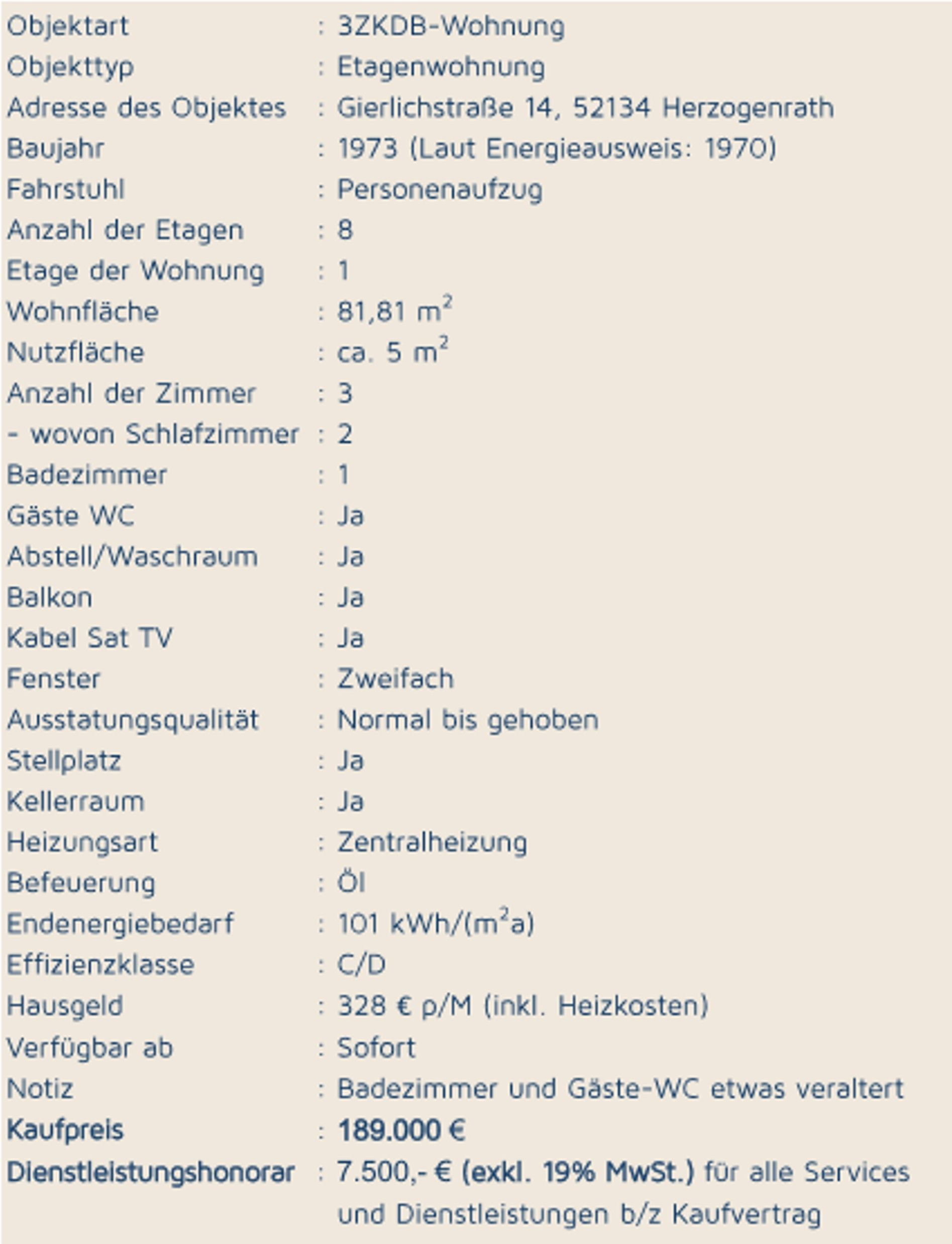 Diese schöne, geräumige und sonnige Wohnung ist ein ideales Zuhause für Singles, Paare, junge Familien oder ältere, weniger mobile Menschen. Das Gebäude ist über den Hintereingang barrierefrei und verfügt über einen Personenaufzug. Diese Wohnung befindet sich im ersten Stock. Zum Angebot gehören auch ein eigener Kellerraum und ein PKW-Stellplatz. Lassen Sie sich jetzt angenehm überraschen. Z.B. durch die Geräumigkeit und die effiziente Aufteilung der ca. 82 m² Wohnfläche. Alle Räume sind großzügig geschnitten und Sie verfügen zusätzlich über ein Gäste-WC und einen Abstellraum mit Anschlüssen für Waschmaschine und Trockner. Das Beste haben wir uns noch aufgehoben. Die Wohnung wurde von mehreren professionellen Unternehmen renoviert und komplett gestrichen, alle Böden sind mit einem schönen Laminat ausgestattet und in der geräumigen Küche wurde eine neue, moderne Einbauküche mit allen Geräten installiert, die Sie sich wünschen können. An wärmeren Tagen werden Sie sicherlich auch den großen Balkon von fast 8 m² zu schätzen wissen.